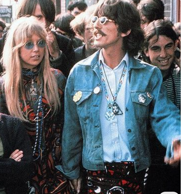 Here are George and Pattie rocking Native American and cowboy (as well as South Asian) accessories and threads.