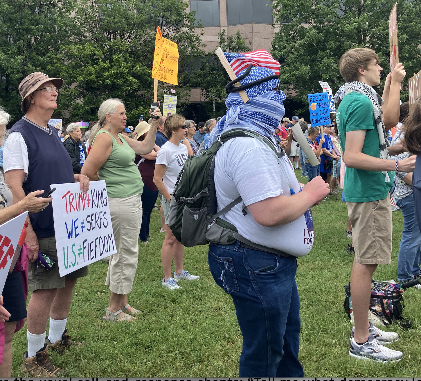 There were the usual call-and-response chants: “Tell me what democracy looks like/this is what democracy looks like”; “A people united/can never be divided.”